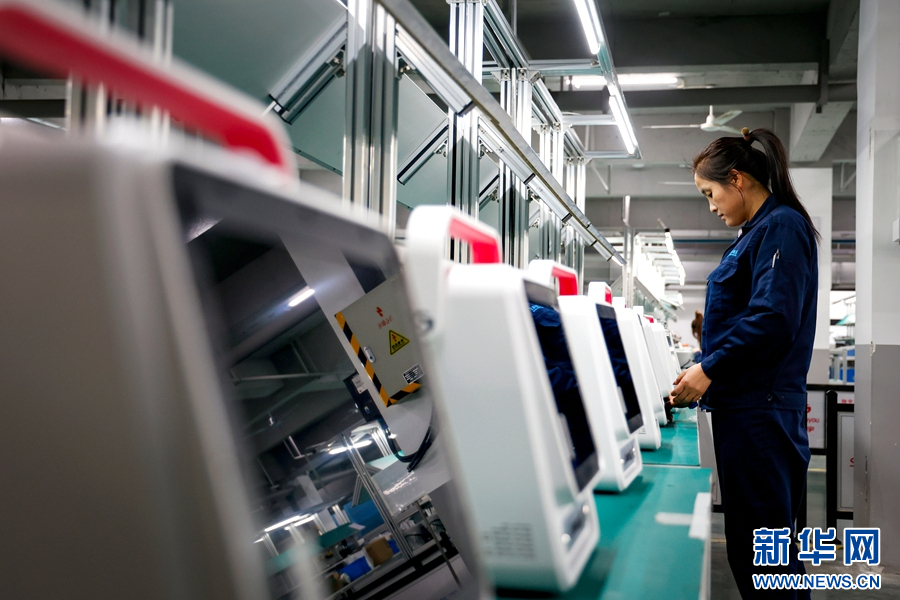 11月25日,位于安阳市内黄县的河南翔宇医疗设备股份有限公司生产车间内,工人正在调试设备。尚佳鑫 摄