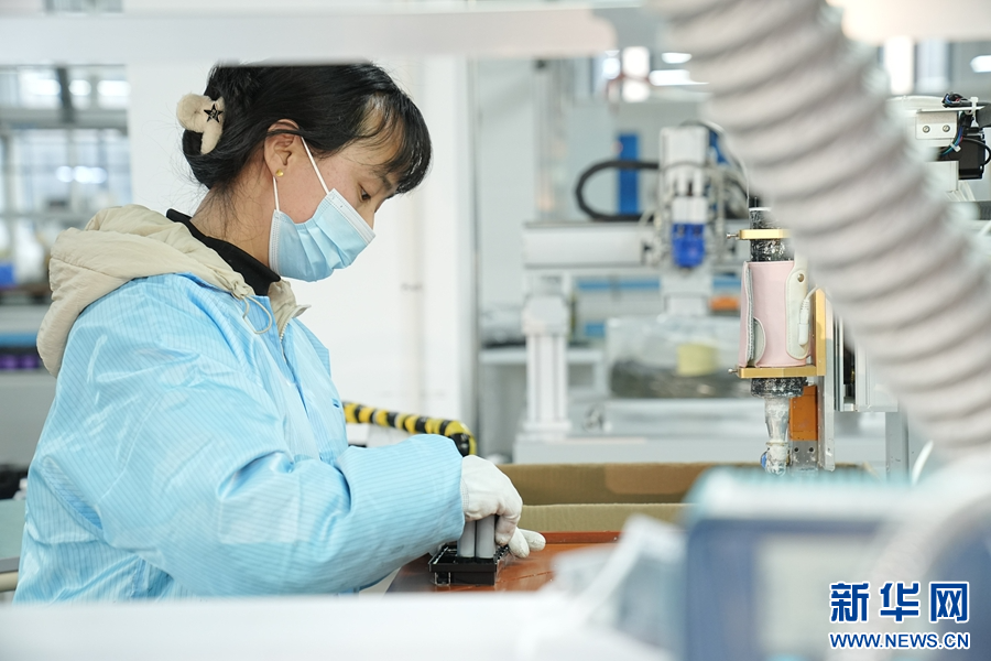11月25日,位于鹤壁市淇滨区的鹤壁云涌科技有限公司车间内,工人正在进行点胶作业。王军伟 摄