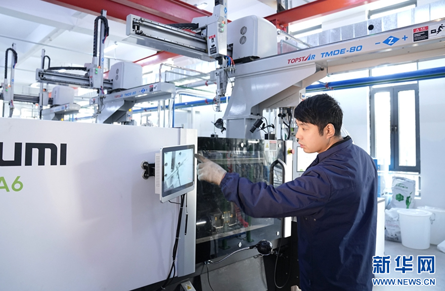 11月25日,位于鹤壁市淇滨区千慧智造产业园的河南博奥电子股份有限公司车间内,工人正在操作全自动注塑机。王军伟 摄