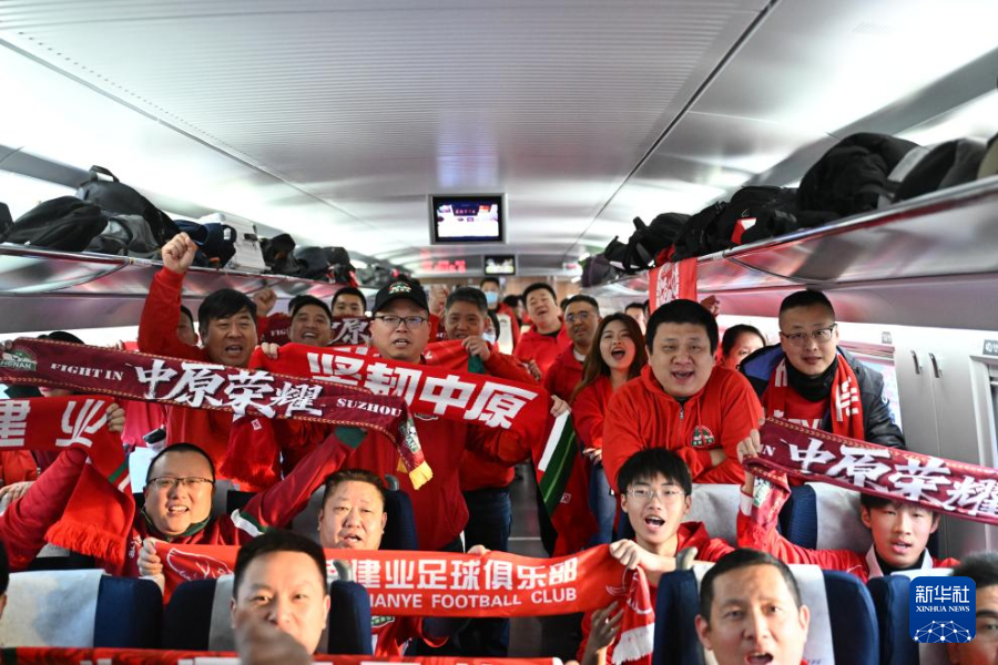 责任编辑:刘远12月6日,河南俱乐部酒祖杜康队球迷在G1801次列车上为球队加油助威。